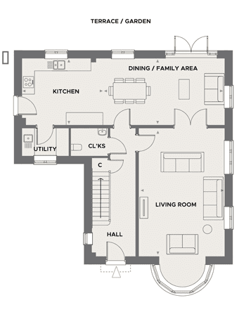 This spacious family home offers a double garage, four double bedrooms, a full-width kitchen/dining/family room with French doors to the garden, and a living room with a stylish bay window, with luxury finishes throughout.
